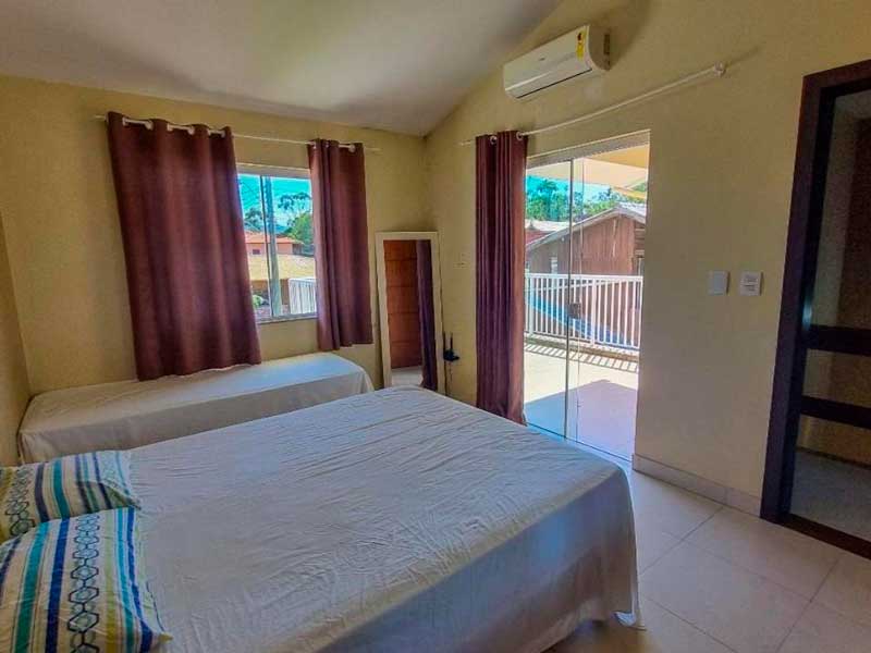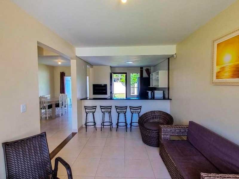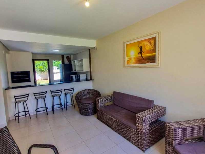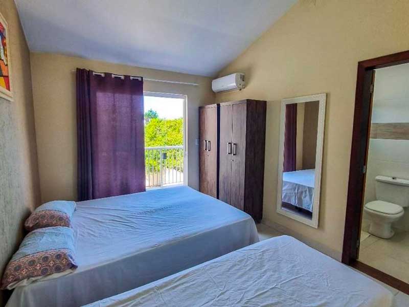 São 6 casas geminadas. Cada uma possui 2 suítes com ar condicionado e varanda privada com vista para o mar. As Casas possuem 3 banheiros, sendo 1 deles um banheiro social (lavabo). Equipadas com sala com Tv (canais abertos), cozinha completa estilo americana com micro-ondas, churrasqueira e espaço para 2 carros.